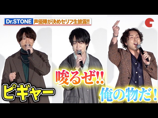 【Dr.STONE】“千空”小林裕介、”龍水”鈴木崚汰、”SAI”山下誠一郎、決めセリフ披露で会場を盛り上げる!最終シーズン第2クール先行上映会舞台あいさつ